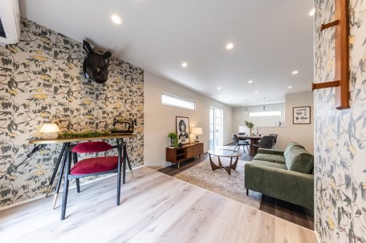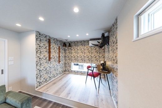オリジナルのデザインクロスを使用することでさらにPORT OF CALL hausらしさを演出しています。2Fは4つの居室を完備。子供部屋や趣味部屋、テレワークルームや客間など、こちらも多様な用途に対応することができます。