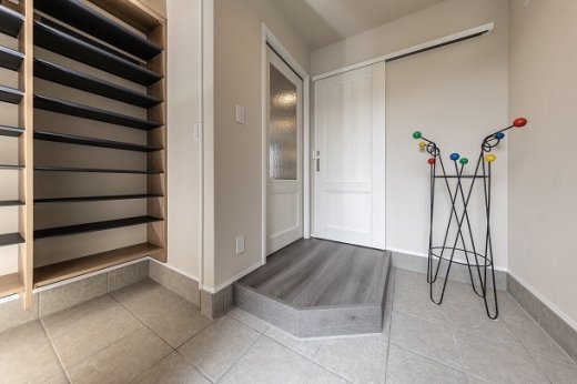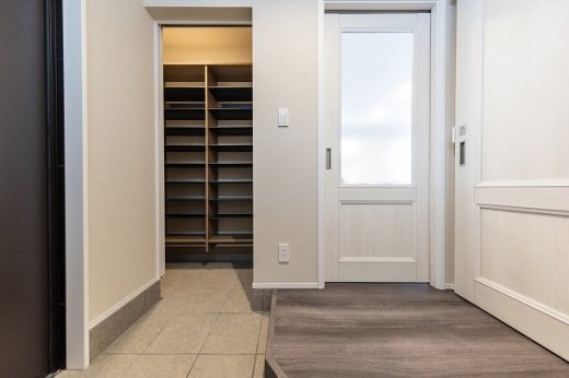 シューズインクローゼットを設けた奥行きのあるエントランスには、サーフボードやアウトドア用品なども収納することができ、見せる収納としてもご活用いただけます。