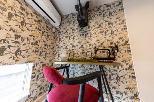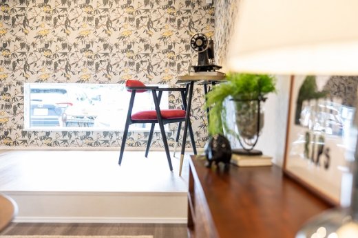 リビングに併設する他用途な空間として小上がりを設置。アパレルのグラフィティを落とし込んだオリジナルデザインクロスを使用し独自の世界観を演出しました。